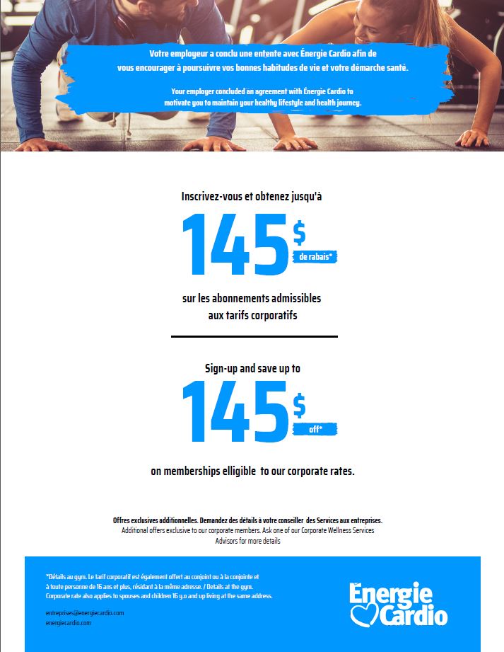 ainsi qu’aux membres de votre famille, de profiter de rabais exclusifs dans les gyms