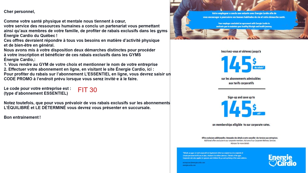 à votre inscription et bénéficier de ces rabais exclusifs dans les GYMS
